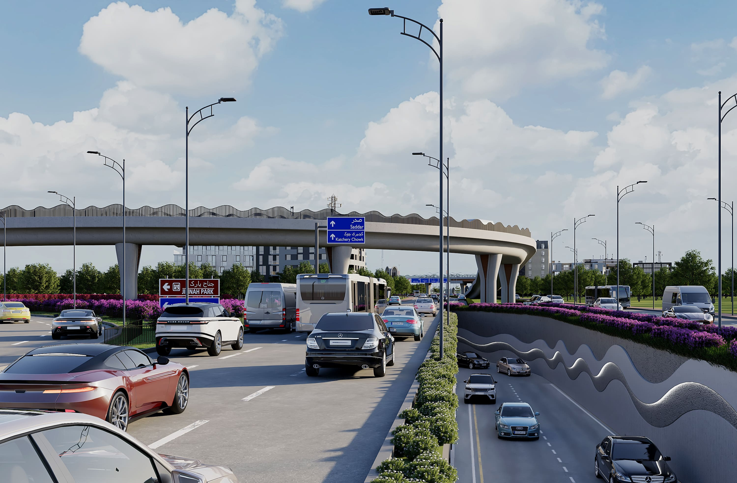 In strategic collaboration with National Engineering Services Pakistan (NESPAK), National Highway Authority (NHA), and Frontier Works Organization (FWO), Axis Design has contributed to the beautification of major bridges and the development of new infrastructure across the city.
